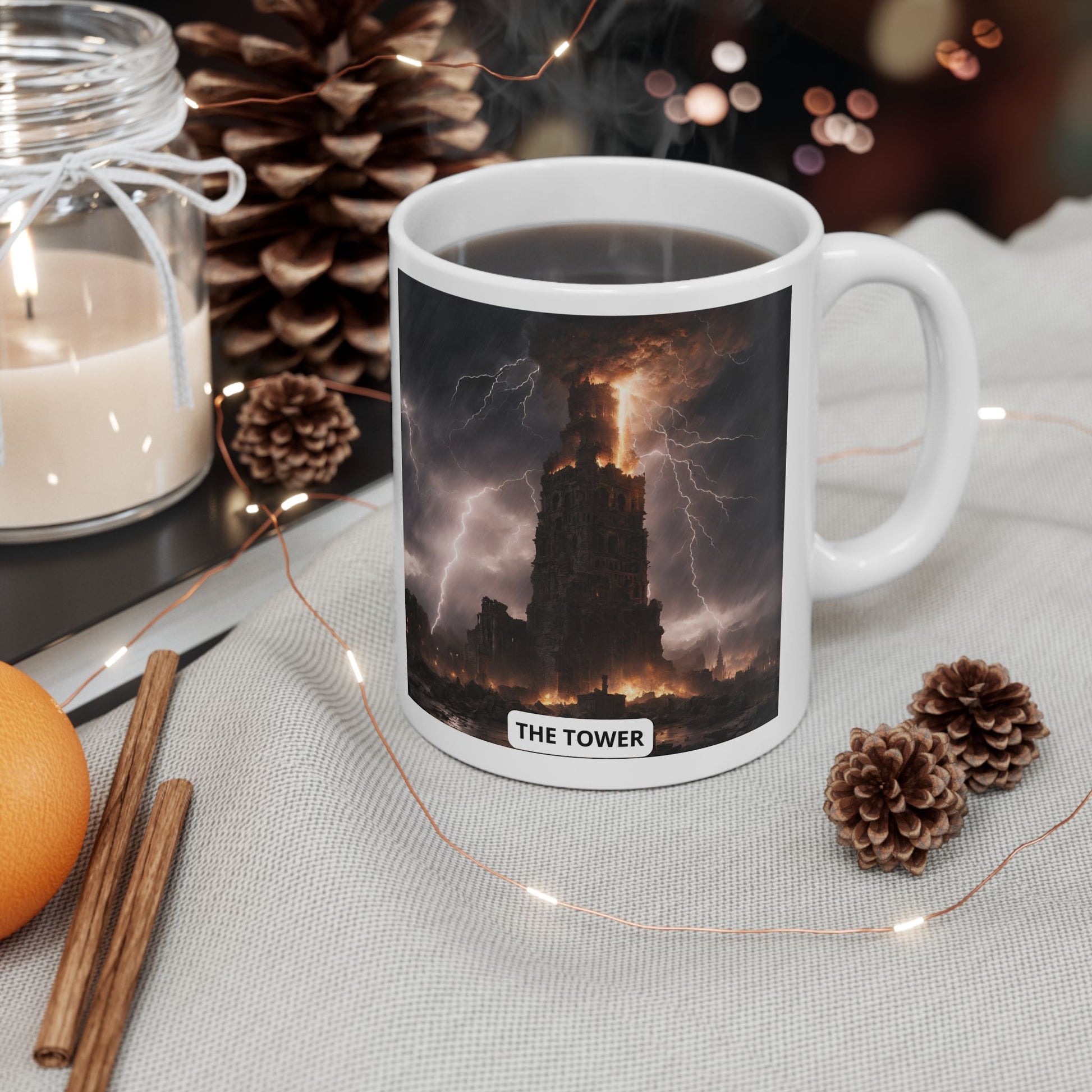 Warm-up with the destruction of The Tower and a nice cuppa out of this customized ceramic coffee mug. It's BPA and Lead-free, microwave & dishwasher-safe, and made of white, durable ceramic in 11-ounce and 15 -ounce size. Thanks to the advanced printing tech, your designs come to life with incredibly vivid colors – the perfect gift for coffee, tea, and chocolate lovers.
